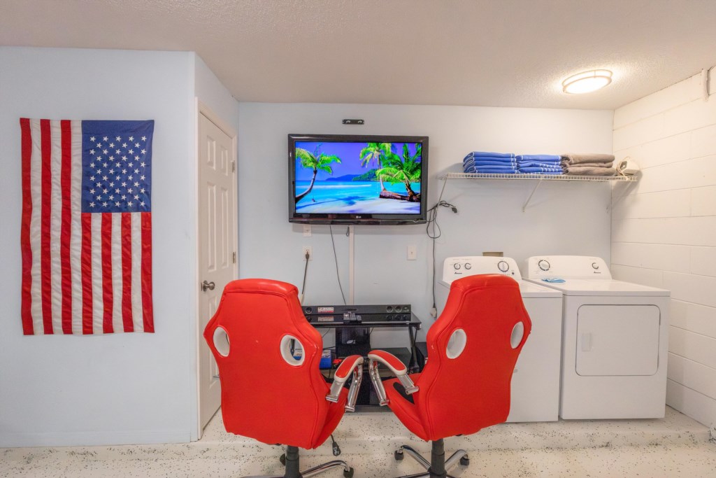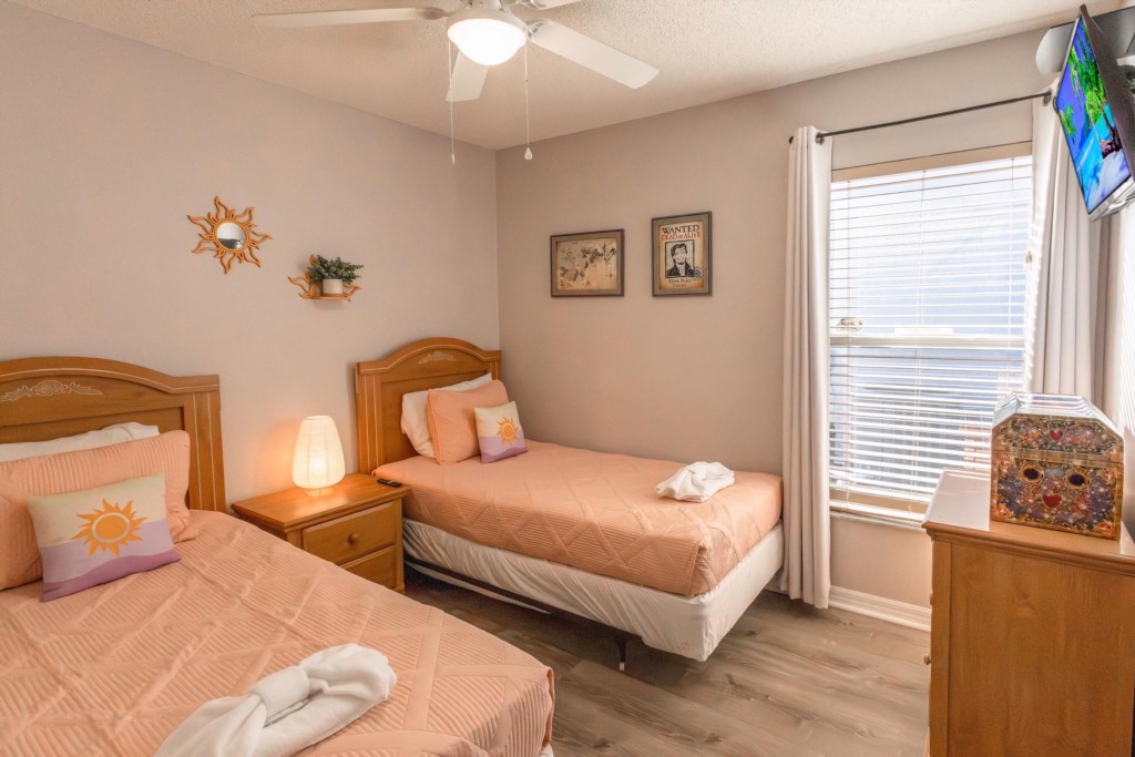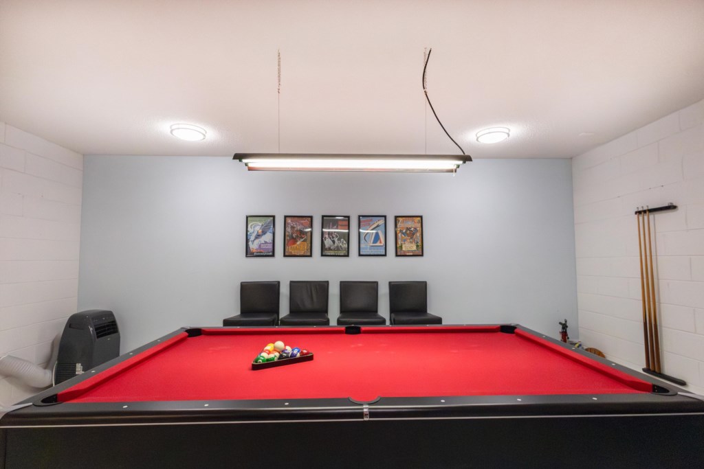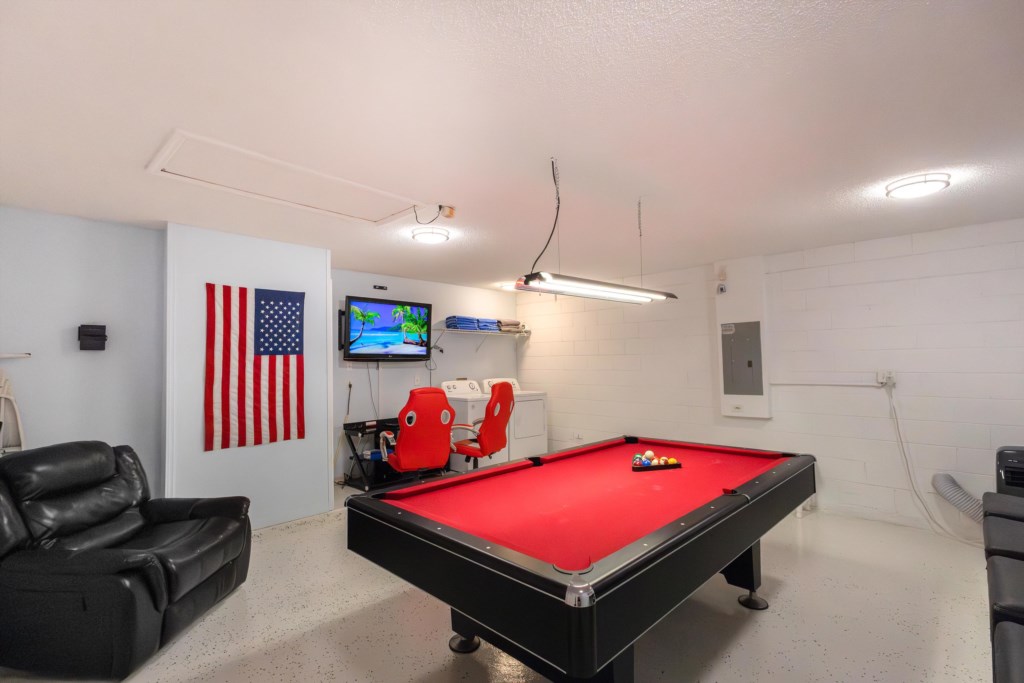 We wish you a warm welcome to a peaceful retreat from your fun filled vacation days! The pool and spa are very private with hedges surrounding it. You can be sure to relax and unwind in the spa with massage jets and optional heating for both the spa and the pool. The pool area is south facing to catch the rays all day long and includes a lanai to cool off and dine by the pool! Why not carry on enjoying the pool after sunset with the atmospheric lighting? The gas grill can be booked as an optional extra to enjoy family time cooking out by the pool. Inside the home, the main family areas are all tiled with laminate flooring in all bedrooms. Every bedroom includes a TV, ceiling fan and ample storage space. The master bedroom with king bed, and the 2nd king bedroom both have ensuite bathrooms with showers. The queen bedroom at the front of the home also has access to the 2nd king bathroom via a separate door. There is an additional poolside full bathroom for both twin bedrooms to use with convenient access to the pool. The open plan family area has a huge couch and a large screen TV that overlooks the pool area. Adjacent to this is the kitchen that is well stocked with cookware, utensils and crockery along with all appliances required for your home away from home experience. There is a Keurig coffee maker and ice maker for essential refreshments! Dining space is plentiful with both the breakfast bar and 8-seater dining table. What’s more is the air-conditioned game room both kids and grown ups will love with pool table and game console with gaming chairs, and games included. This home really has everything to offer for a wonderful Florida getaway in a perfect location!